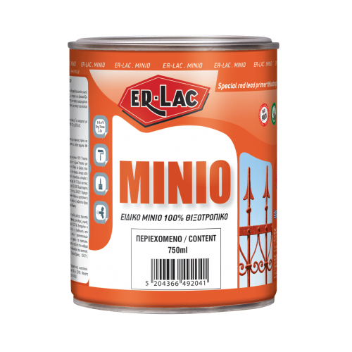 Το ΜINIO είναι θιξοτροπικό 100% αντισκωριακό υπόστρωμα με βάση συνθετικές ρητίνες. Είναι κατάλληλο για πρώτη επικάλυψη σιδηρών επιφανειών με σκοπό να τις προστατέψει από την οξείδωση. Ξεχωρίζει για τις ισχυρές αντιδιαβρωτικές του ιδιότητες. Εφαρμόζεται εύκολα, στεγνώνει γρήγορα και εξασφαλίζει άριστη πρόσφυση χωρίς να στάζει λόγω της θιξοτροπικής υφής του. Έχει εξαιρετικές μηχανικές ιδιότητες και παρέχει μακροχρόνια προστασία από τη σκουριά. Επίσης είναι κατάλληλο για ξύλινες επιφάνειες τις οποίες προστατεύει από τα παράσιτα των ξύλων